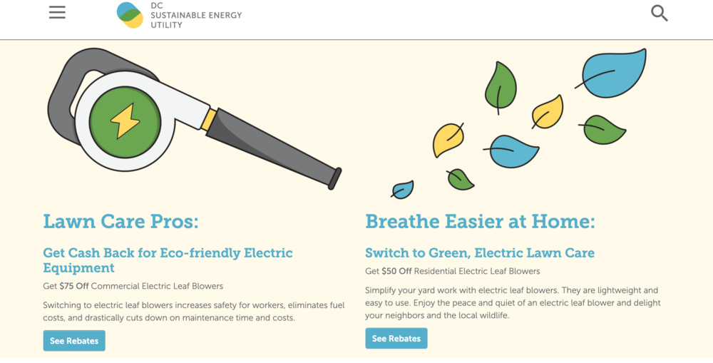 On providing financial help, the District’s innovative Sustainable Energy Utility (DCSEU) created a rebate-and-subsidy program, to help speed the shift to battery-powered equipment. A local bank also announced a zero-percent financing program for small and startup businesses making the change.