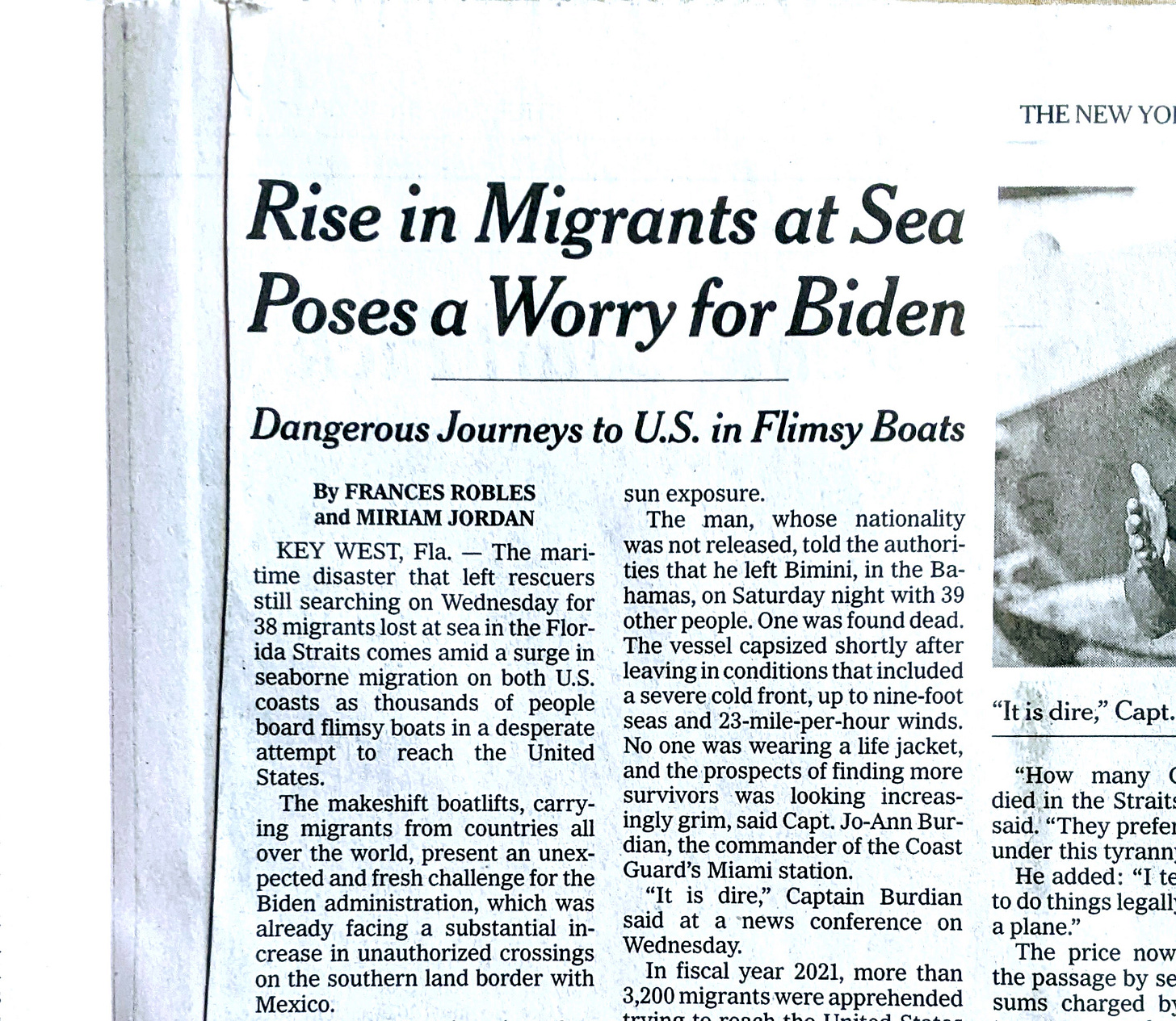 In its online versions of this story, the paper later thought to change the headline to something less crass. (It now says: “A Surge at Sea: Migrants Seek Entry to the U.S. Aboard Flimsy Boats.”) The point is the initial impulse, that what mattered in the news was: What it meant for politics, and what it meant for “how’s Biden doing?”2