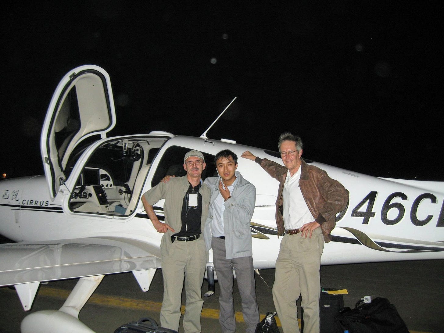Peter and I sat in the front seats for the flight together from Changsha to Zhuhai—he in the left seat, me in the right. The trusting Walter Wang was in the back. The three of us came closer to not surviving than in any other small-plane flight I’ve ever made. The expressions you see on our faces above are of genuine relief. I explain why we were so worried, and how we made it, in the first chapter of my book China Airborne, which I wrote in 2011 while we were living in Beijing and which came out in 2012.