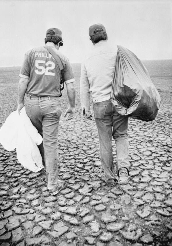 Bob Graham, on the right, as governor, working as part of a volunteer trash-pickup crew in a drained lake bed.