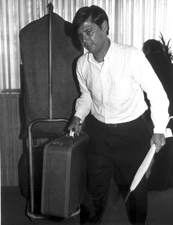 Bob Graham, looking like a student but age 40 at the time, on his day in 1977 as bellhop in an Orlando hotel.