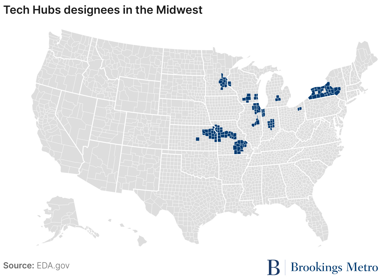 It remains easy to misperceive the Midwest as merely “flyover” country, with industries that mattered to the last century’s economy but not to today’s tech-driven one. However, the geography of the nation’s new industrial strategy demonstrates that the region and its innovation infrastructure are reemerging as key focal points for the desire to invent, commercialize, and scale-up the technologies that will advance American competitiveness.