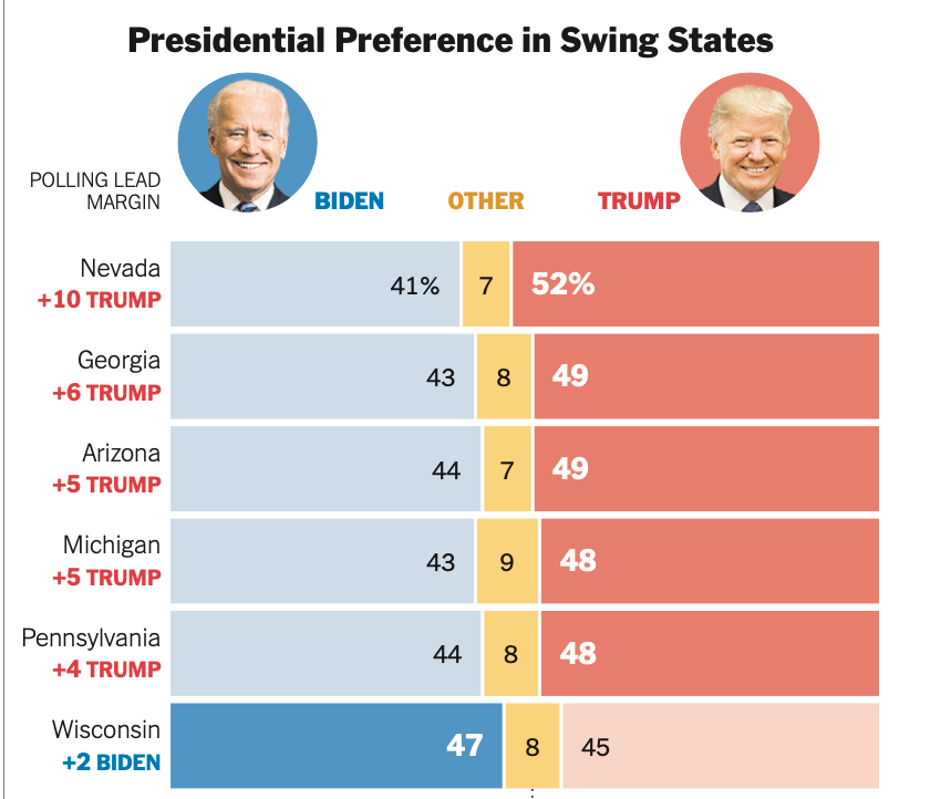 Head-to-head polls, which have been heralded as showing Biden far behind Trump, have for now turned around—as with the image above. Polls are volatile, but this is a shift that Biden must welcome.