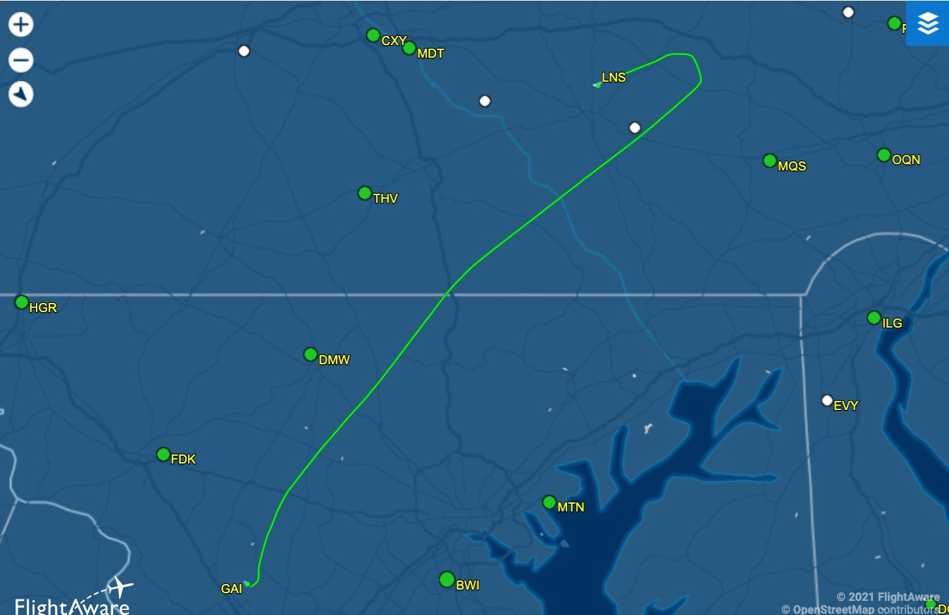 I’d gone out this afternoon for a training flight, with “practice approaches” to tune up my muscle-memory of the plane’s avionics. The outbound leg was from Gaithersburg, Maryland, where our airplane is based, to Lancaster, Pennsylvania.