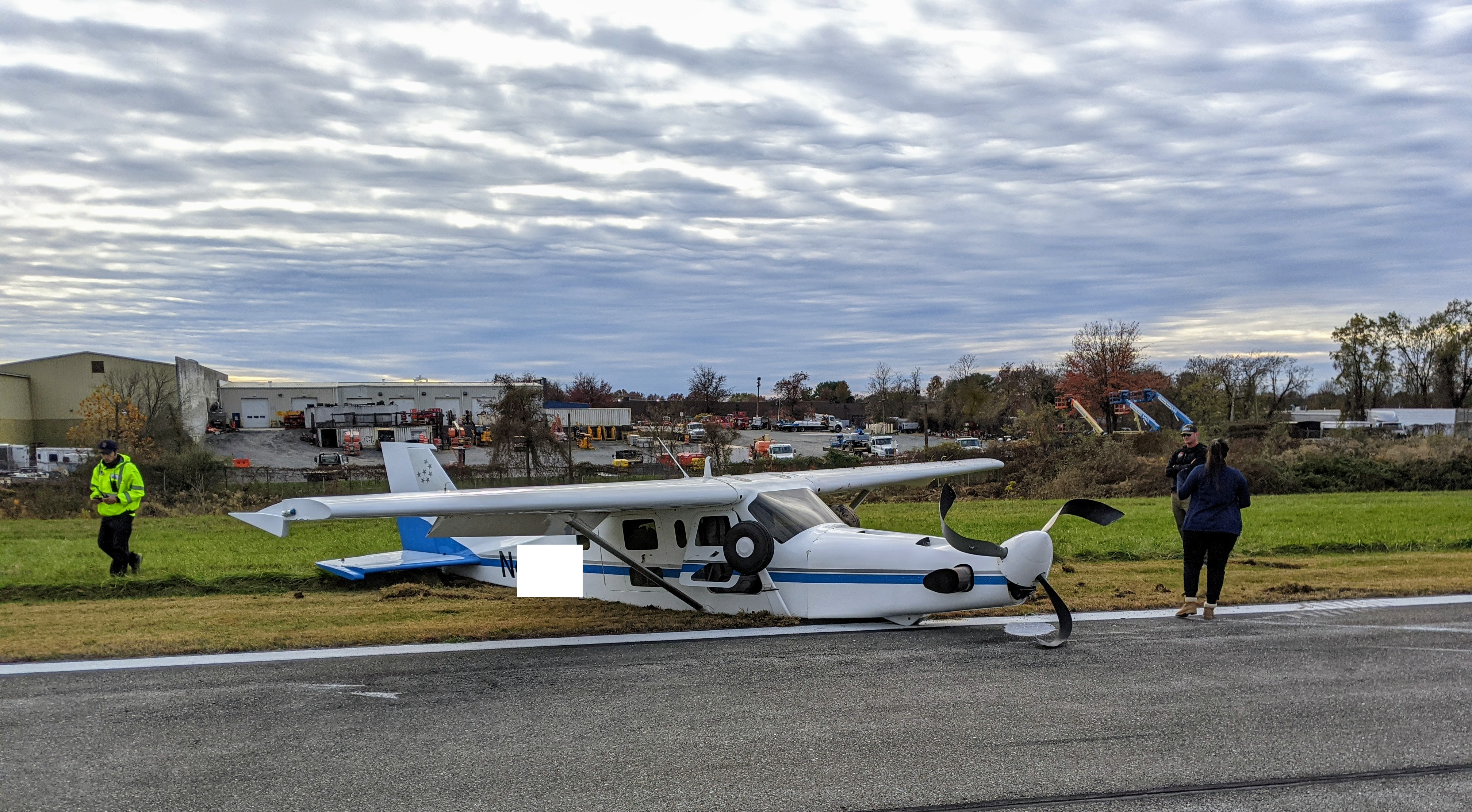 The same for the many planes that had been preparing to take off, and had to go back to their tie-down areas and let out their passengers. This runway was closed, until the FAA could check out the plane and any damage to the runway—and because this is the only runway at the airport, the whole airport was closed as well. (Update: it reopened long after dark last night.) The airport authorities asked everyone who had been around for the incident to stay and give a statement, including me.