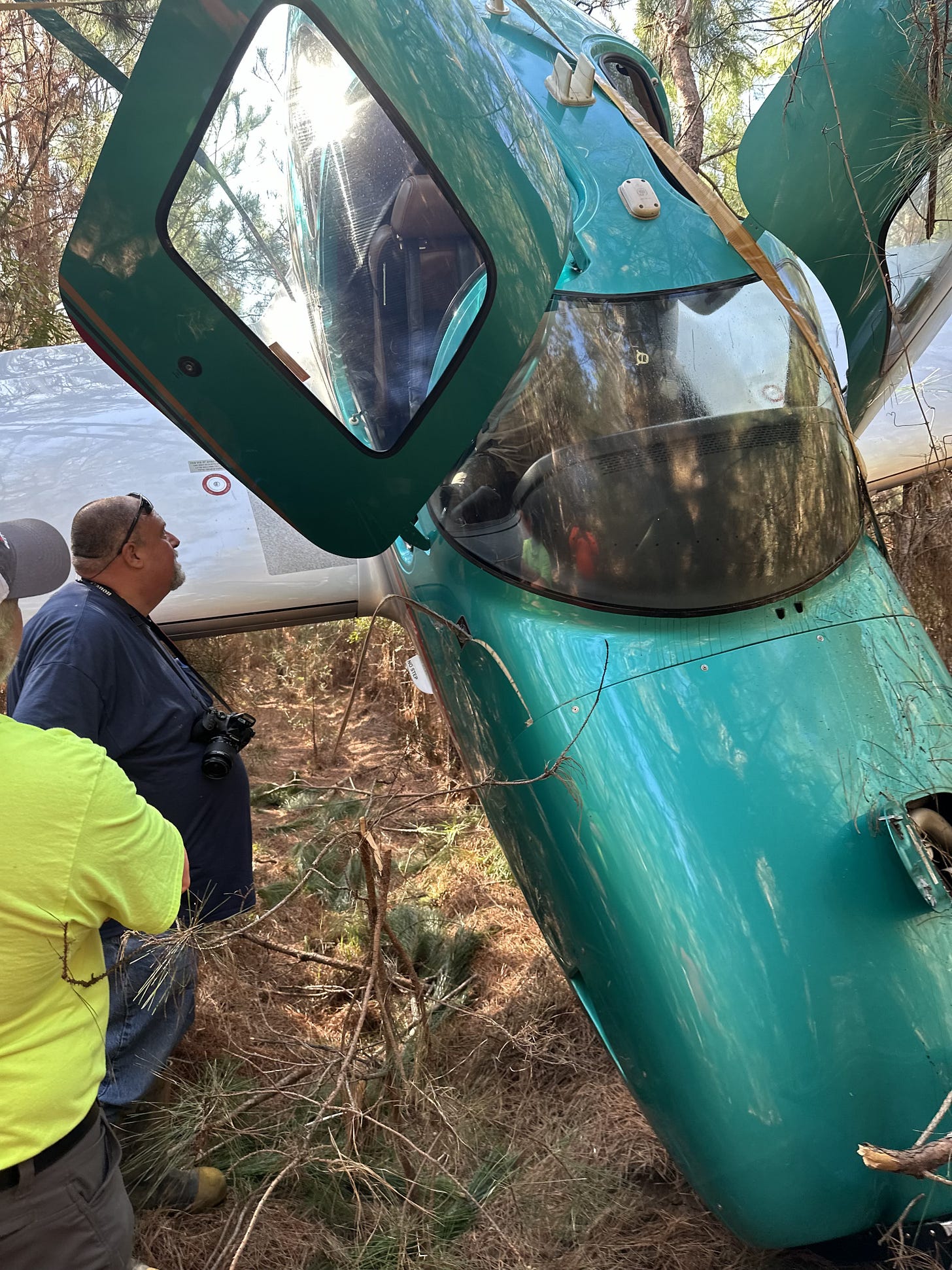 Three days ago, on Saturday afternoon, a couple and their dog took off from Brunswick, Georgia, in a Cirrus SR22. About 30 minutes into their flight the engine failed for some reason. As their plane headed toward the ground they looked around for places to land; realized they were beyond gliding range of the nearest airport, in Reidsville, Georgia; and deployed the parachute.