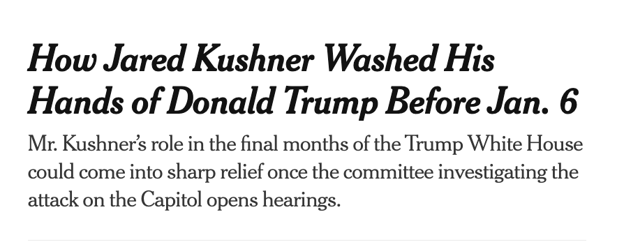 In related news: this “Jared and Ivanka meant well” story relies on “people close to them” saying that they never bought Donald Trump’s stolen-election lies: