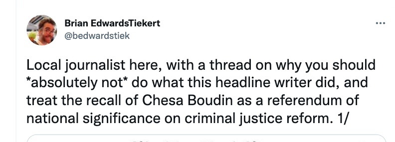 Consider this thread from a local California journalist, Brian Edwards-Tiekert, which began: