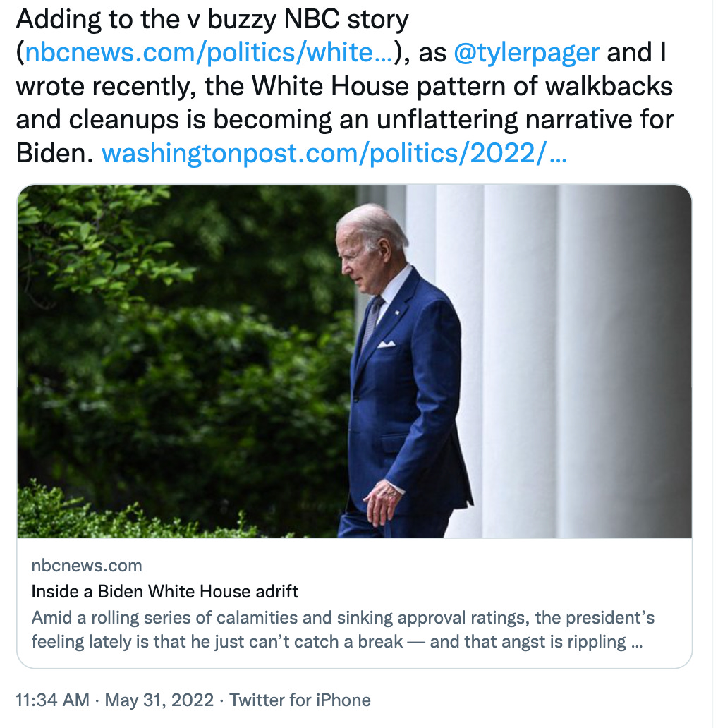 Here is a recent tweet, from a major paper’s lead White House reporter. I am not naming the reporter because it is a cultural rather than individual outlook that matters.