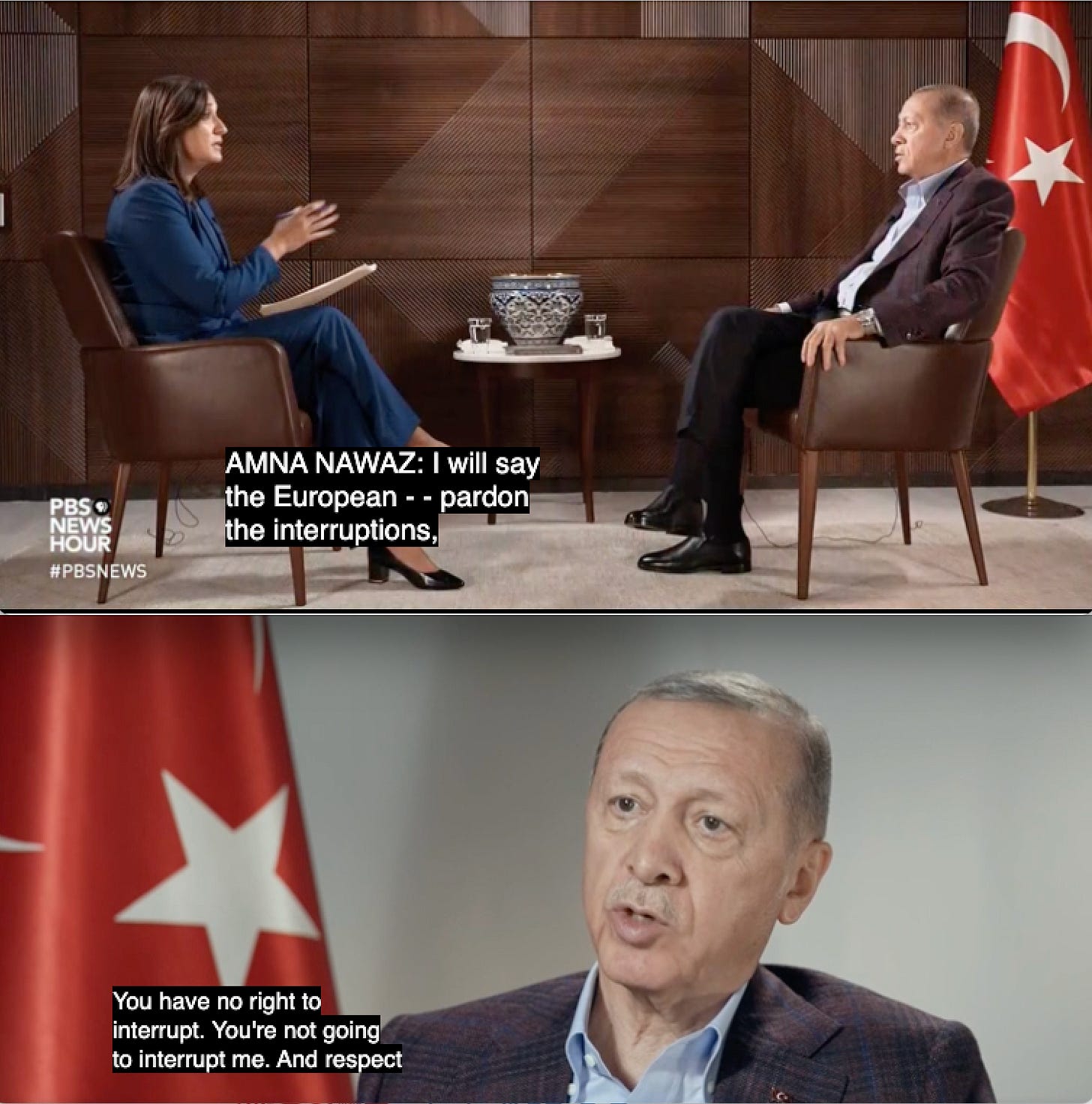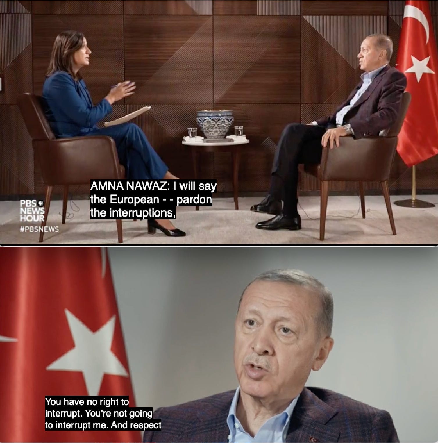 Last week PBS NewsHour aired a remarkable 12-minute interview by its co-host Amna Nawaz with Recep Tayyip Erdogan, president of Turkey. The main backstage question about this encounter is how the NewsHour staff prepared for it (and what others might learn), and how the on-air figure, Nawaz, managed the temperamental challenge of interviewing a self-important authoritarian.