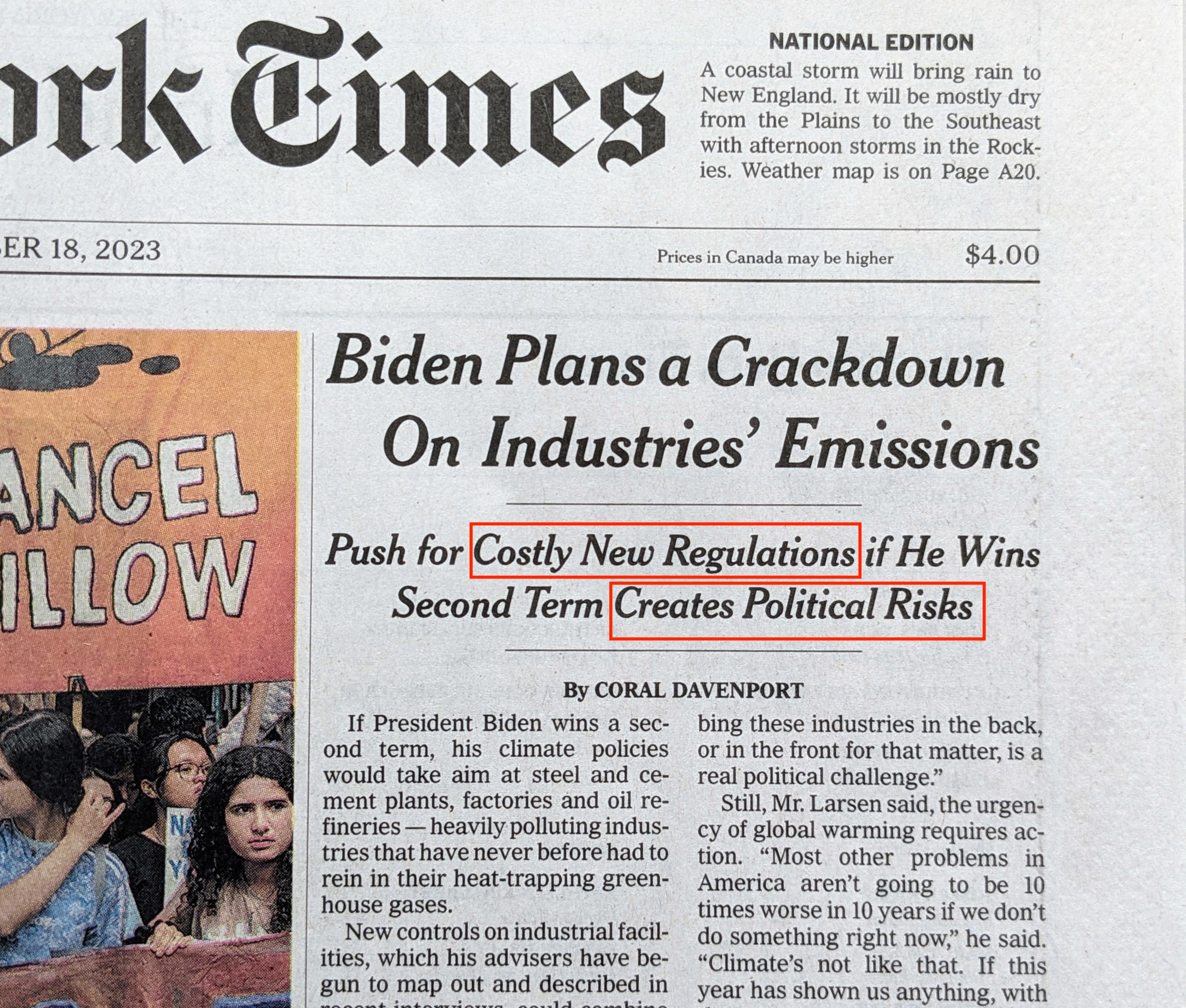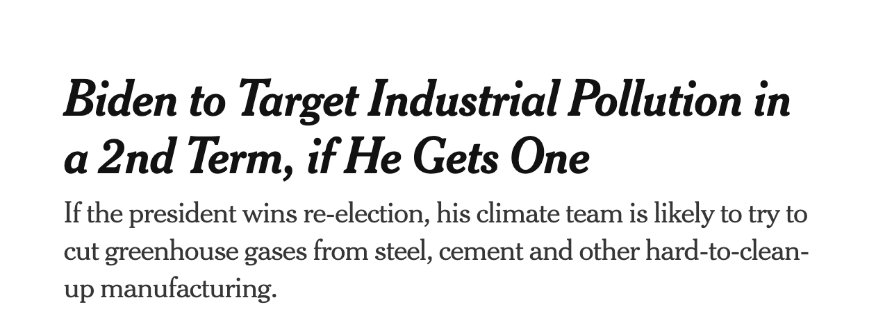 An incumbent president proposes a major climate initiative for his second term, if re-elected. Our leading paper puts it on the lead position on its front page, and frames it this way: