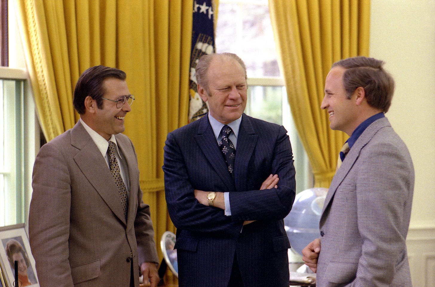 At age 30 Cheney was a staffer in Richard Nixon’s White House. By age 34, he was Gerald Ford’s White House chief of staff, succeeding — wait for it — Donald Rumsfeld.