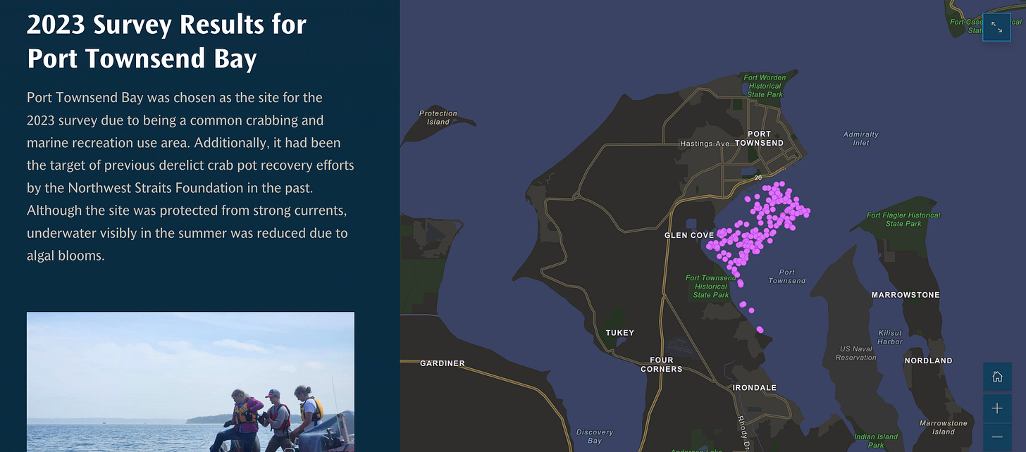Members of the ‘Sea Dragons,’ retrieving abandoned crab pots that are causing wildlife loss in the Salish Sea of the Pacific northwest. (Sea Dragons story map.)