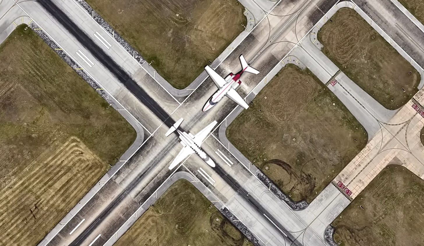 On Xitter and through other media, the NTSB said bluntly that the flight crew of the departing aircraft, the Hawker, had been at fault. According to NTSB, the tower controller had told them to “line up and wait” on runway 22. This is a formulaic phrase universally understood to mean: “Go onto the runway and be ready, but DO NOT take off.” It’s the equivalent of swimmers or runners hearing Take your mark. Set. And then waiting for Go!